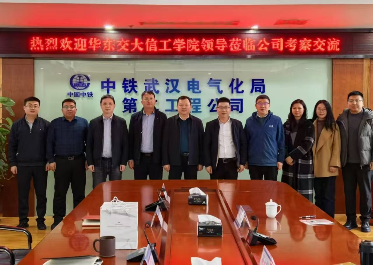 在中铁武汉电气化局第二工程公司座谈会上,公司党委书记、董事长顾建荣详细介绍了企业的发展历程、核心业务及技术成果。魏永峰介绍了学校近几年蓬勃发展及学院在学科建设与人才培养等方面的取得的成效,并对企业支持学院就业工作表示感谢,希望以此次交流活动为契机,在学生就业、党建共建、项目合作等方面构建长期稳定的合作关系,实现互惠共赢。参加座谈会的还有中铁武汉电气化局第二工程公司党委副书记朱勇超,副总经理曾元,人力资源部部长陈志海以及校友闫飞飞、刘锐、林睿。