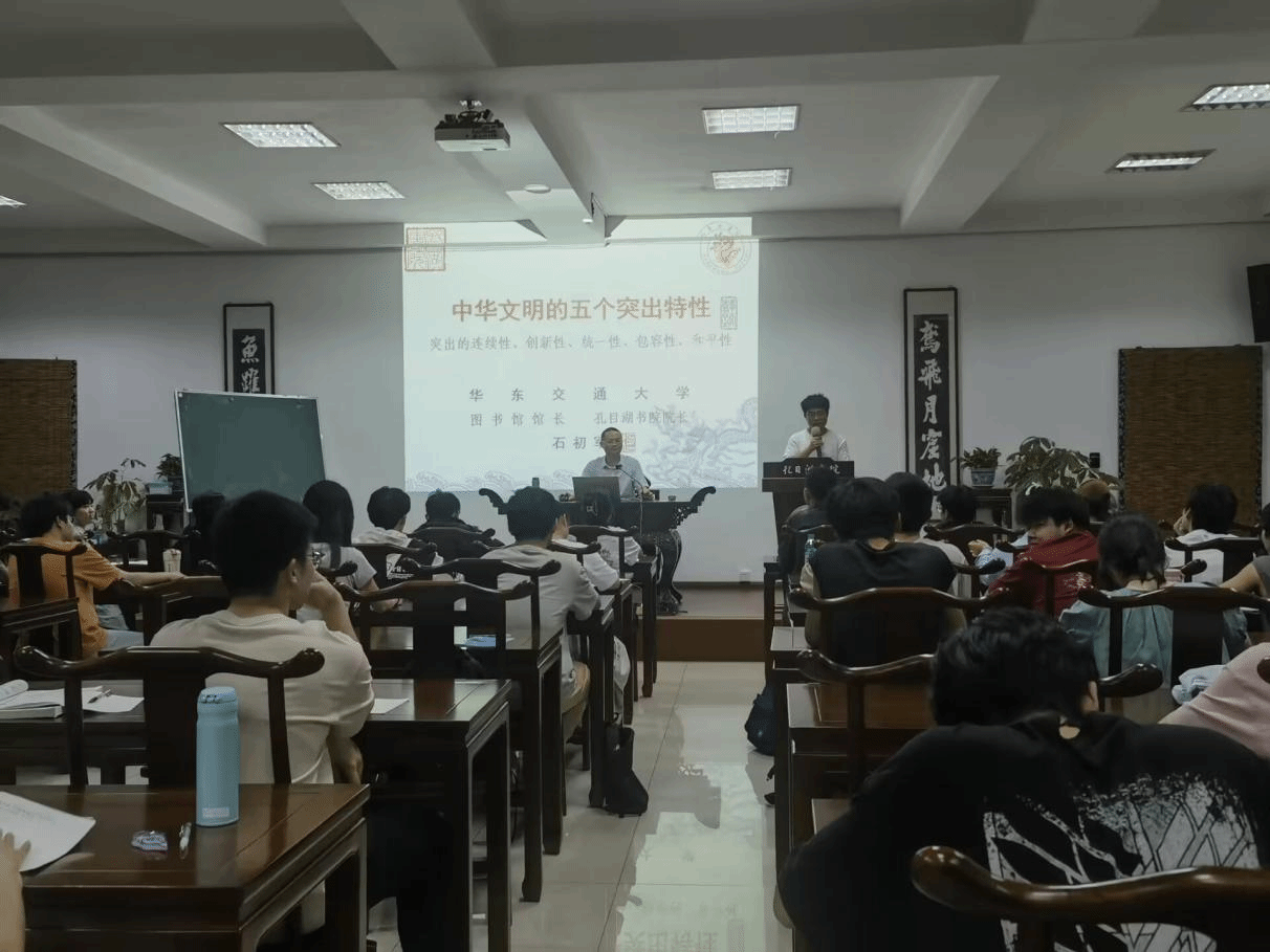 5月9日,信息工程学院分党校于图书馆407举行第六期发展对象党课培训第五讲课程,此次培训邀请太阳集团图书馆馆长、孔目湖书院院长石初军老师授课。石初军老师以深刻而生动的方式,带领参训学员深入探讨了“中华文明的五个突出特性”,为与会者呈现了一场精神与智慧的盛宴。