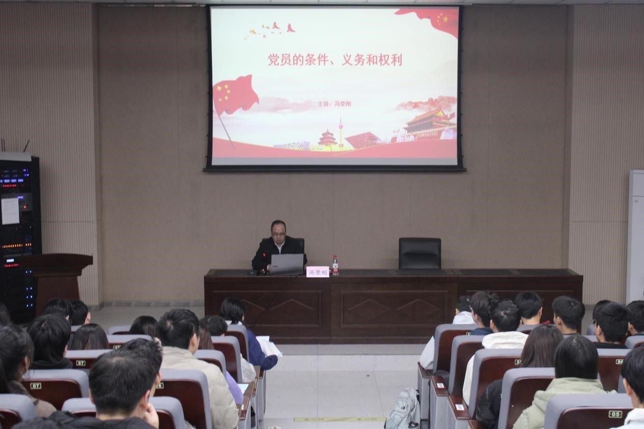 课上,冯荣刚阐述党章的重大意义,强调党员与入党积极分子需依党章标准严格要求自身,入党后更要发挥先锋模范作用。他从申请入党条件、成为党员基本条件、履行党员义务、行使党员权利四方面展开解读,谈到共产党员作为有共产主义觉悟的先锋战士,要全心全意为人民服务,做普通劳动人民一员,不谋私利与特权。