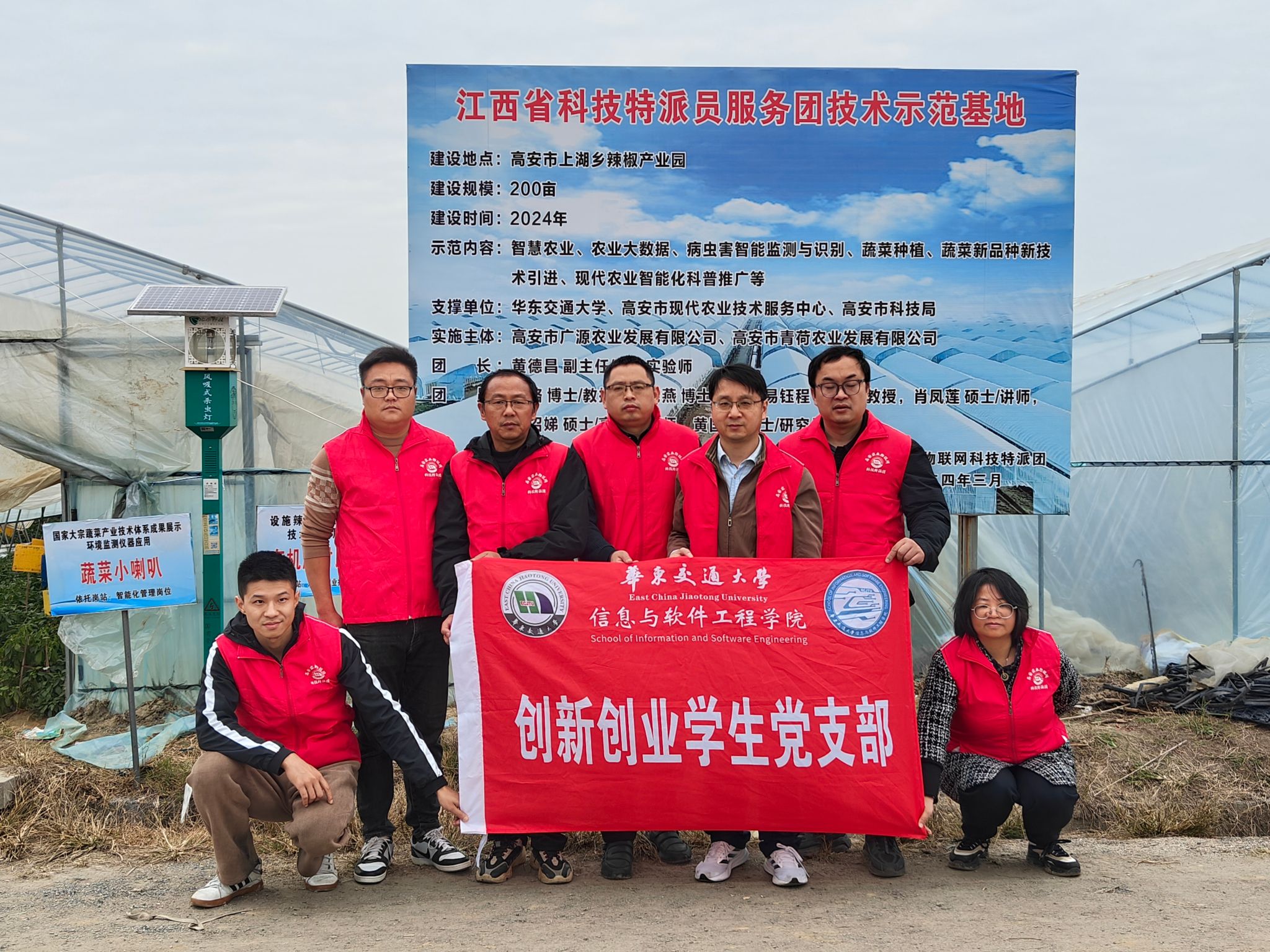 2024年12月3日,创新创业学生党支部副书记黄德昌一行,在高安市科技局副局长肖凡带领下,先后深入高安市广源农业发展有限公司、宜春市青荷农业科技有限公司、江西瑞龙药业有限公司的蔬菜种植基地,针对秋延后辣椒、中药材等种植情况开展科技服务工作,为农业种植数字化管理贡献智慧与力量。
