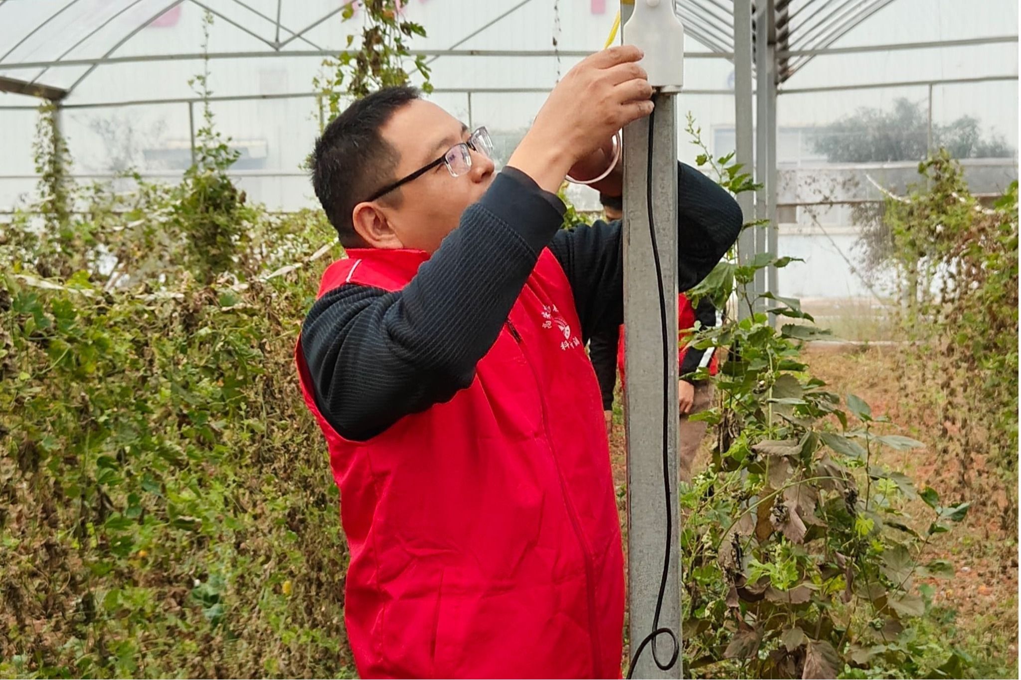 同时,创新创业学生党支部成员结合秋延后辣椒和中药材产业生产和发展实际,为提升种植管理智能化水平,给基地免费安装了“低功耗农情泛在感知节点”物联网监测设备,并详细介绍使用方法,通过该设备,可实时监测大棚内温湿度、土壤肥沃度等环境状态,助力公司实现智能种植与管理,有效解决了公司在数字化管理方面的急迫需求。