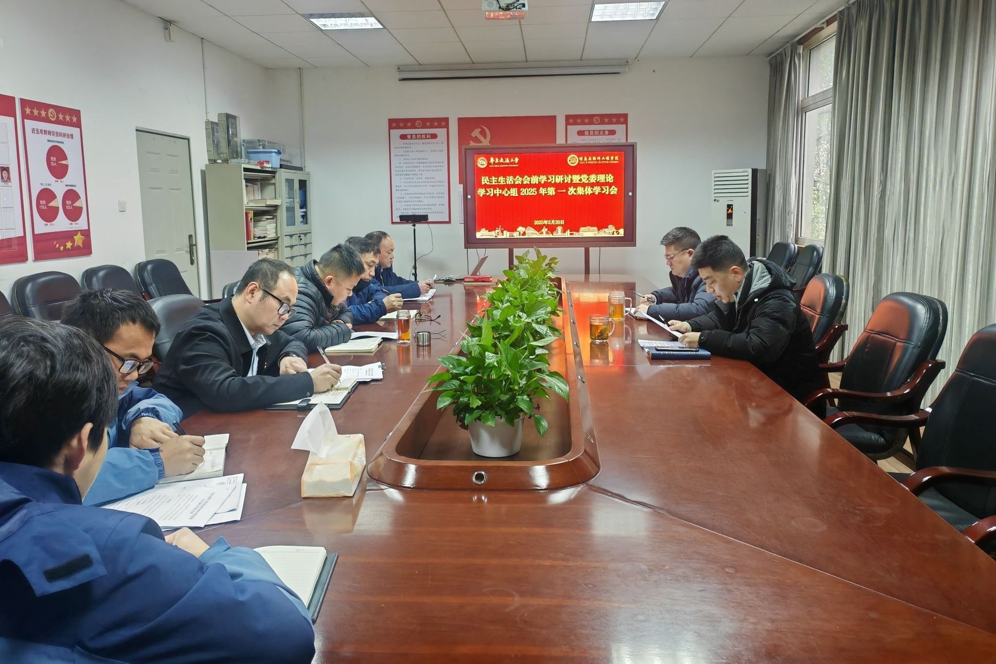 2月20日,信工学院党委理论学习中心组举行2025年第一次集体学习会暨民主生活会会前集体学习。会议由学院党委书记魏永峰主持,学院党委理论学习中心组全体成员参加。