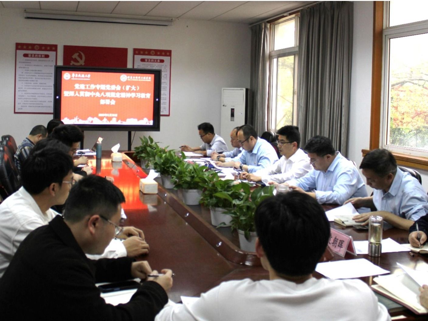 3月26日下午,信工学院党委在教4栋311会议室召开院党委会(扩大)会议,传达学习习近平总书记关于深入贯彻中央八项规定精神学习教育的重要讲话和重要指示精神、中央党的建设工作领导小组会议精神、省委常委会会议精神、上级业务培训会精神,以及学校党委工作要求,研究部署深入贯彻中央八项规定精神学习教育工作。院党委书记魏永峰主持会议并讲话,全体班子成员出席会议。