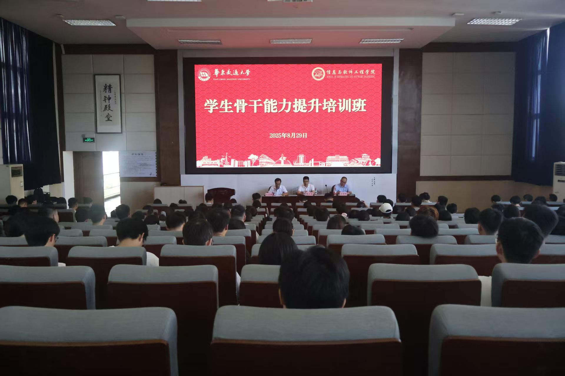 为切实加强学生骨干队伍思想政治建设,全面提升综合素质与服务水平,8月29日至31日,信工学院在图书馆202报告厅举行2025年学生骨干能力提升培训班。院党委书记魏永峰、党委副书记冯荣刚出席开班仪式。学院学团工作科级干部、2025级新生辅导员及全体参训学员参加开班式。