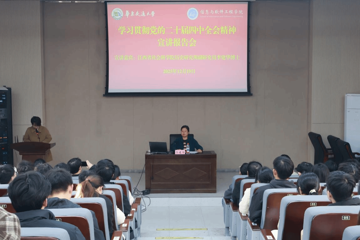 为深入学习宣传贯彻党的二十届四中全会精神,推动红色文化传承与时代精神深度融合,12月19日下午,江西省社会科学院历史研究所、全国红色基因传承研究中心副研究员李建华博士来到我院作宣讲报告,报告会在教5栋校友报告厅举行。学院党委书记魏永峰对李建华博士的到来表示热烈欢迎,学院党委组织员黄芳主持活动,150余名学生党员、入党积极分子参加此次宣讲。