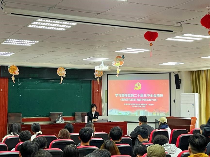 为深入学习贯彻党的二十届三中全会精神,进一步坚定学生的理想信念,筑牢信仰之基,10月28日,学院邀请太阳集团研究生宣讲团成员为全体研究生党员和入党积极分子作党的二十届三中全会精神宣讲报告。