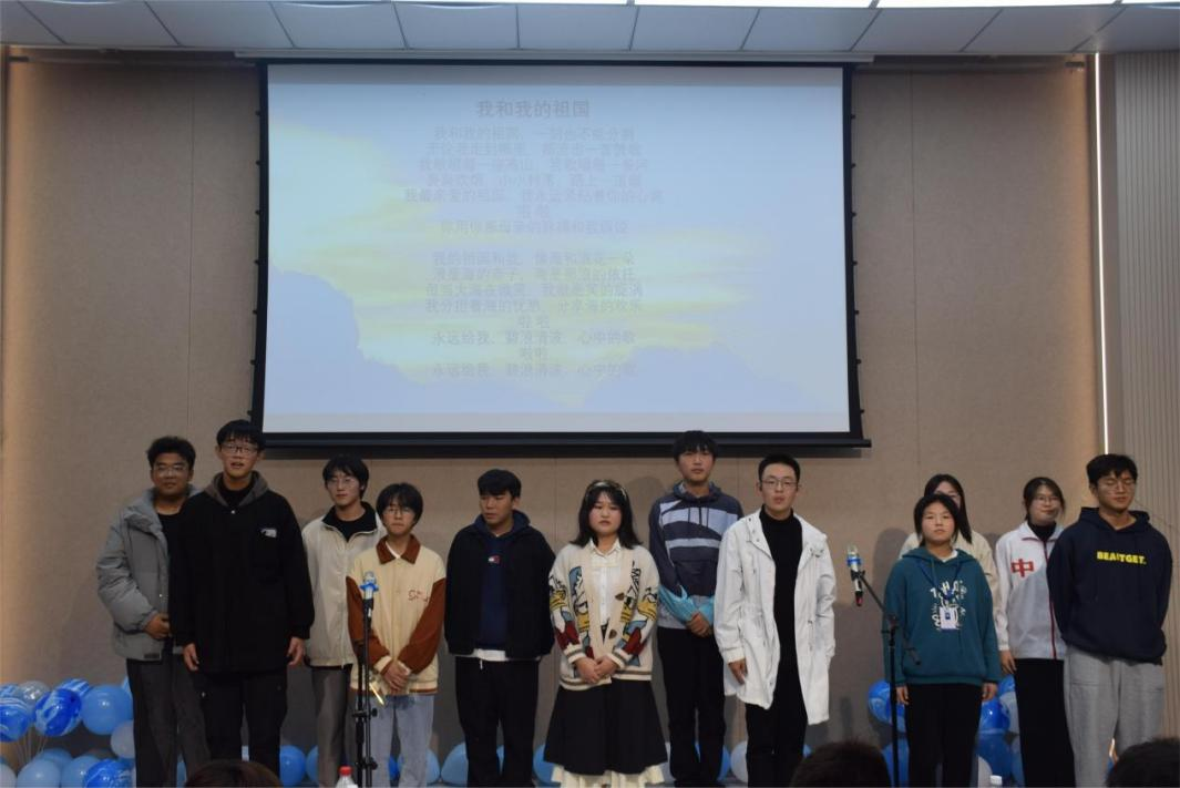 比赛结束之后,所有选手和在场观众一同唱响《我和我的祖国》,每位选手都带着青春昂扬的精神面貌,纷纷用此歌声表达着自己对祖国与党的热爱之情。在党的二十大刚刚结束之际,选手们更是对祖国与党充满热忱,热情高涨。“放歌二十大 奋进新征程”,青歌赛不仅促进了各学院之间的友好交流,增进了同学之间的美好友谊,更通过歌曲的传唱,推动青年朋友们积极学习贯彻党的二十大精神,让党的二十大精神“声”入人心