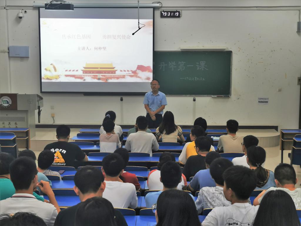 为贯彻落实习近平总书记在庆祝中国共产党成立100周年大会上的重要讲话精神,我院集中开展学习贯彻习近平总书记“七一”重要讲话精神主题开学第一课活动,热烈庆祝党的百年华诞,教育引导广大青年高举团旗跟党走,争做堪当民族复兴重任的时代新人。9月6日7点30分,19计算机专业全体同学在辅导员何仲坚老师的引导下,以“传承红色基因  勇担复兴使命”为题,对“七一”重要讲话精神进行了学习。