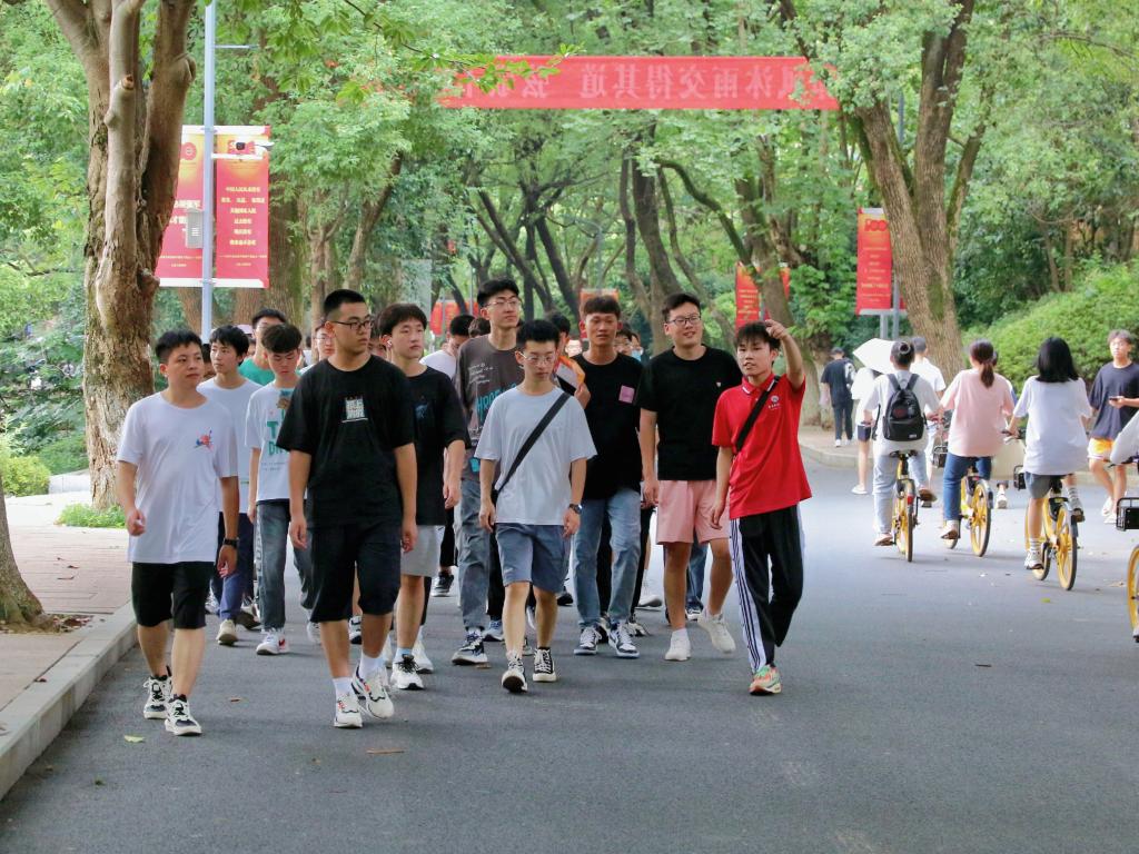 “大家现在看到的‘团结、求实、创新、奋进’这八个字就是学校的校风……”带班党员们悉心地为萌新们介绍交大特色地标,共同感受交大魅力。从养心湖到天佑桥,从逸夫楼到孔目湖,以老带新,绿荫道上学校史,领悟校风校训,传承“铁”的精神。