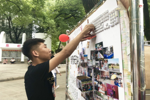 迎新点的展板上,三副键盘帽吸引了大批吸引注册报道的新生的目光。上档键、回车键,一个个键盘按键键帽画有“嘟嘴”、“斜眼笑”等不同表情符号和写有“我爱花椒(华交谐音)”“信息工程学院”字样。工作人员介绍,来到这里的每一位新生,可以选取一枚喜欢的键帽留作纪念。此外,幸运的新生在揭开键帽的瞬间也会发现彩蛋——来自学长学姐的“定制祝福”。