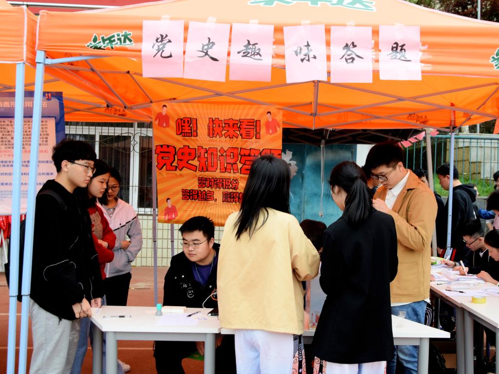 4月3日,南区田径场清明节活动摊位参与趣味党史答题,大家一起学党史,感受革命光辉;与好友组队进行红色经典歌曲传递,唱响红色经典等八项特色活动均能获得活动积分,积分可兑换软糯清甜的自制青团。时代与民俗相结合,积极响应中央“学党史”号召,寓教于乐,宣扬红色经典,学史明理、学史增信、学史崇德、学史力行,用党的光荣历史启迪智慧,砥砺品格。