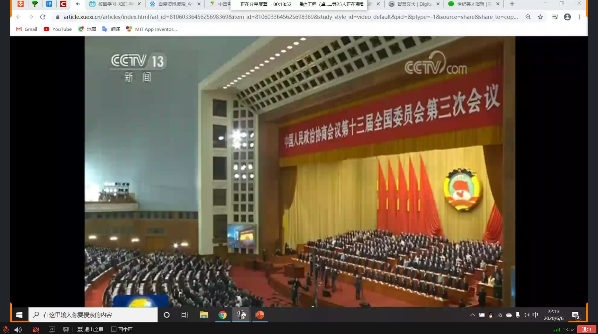 全体学员观看两会开幕视频