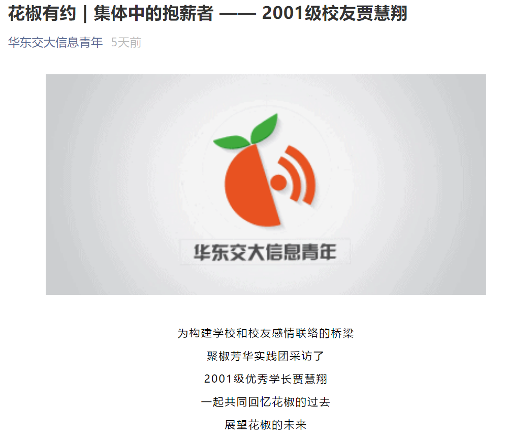 7名成员历时15天制作人物专访稿件3篇、微信推送3期。并将祝福视频统一剪辑,为花椒献礼。