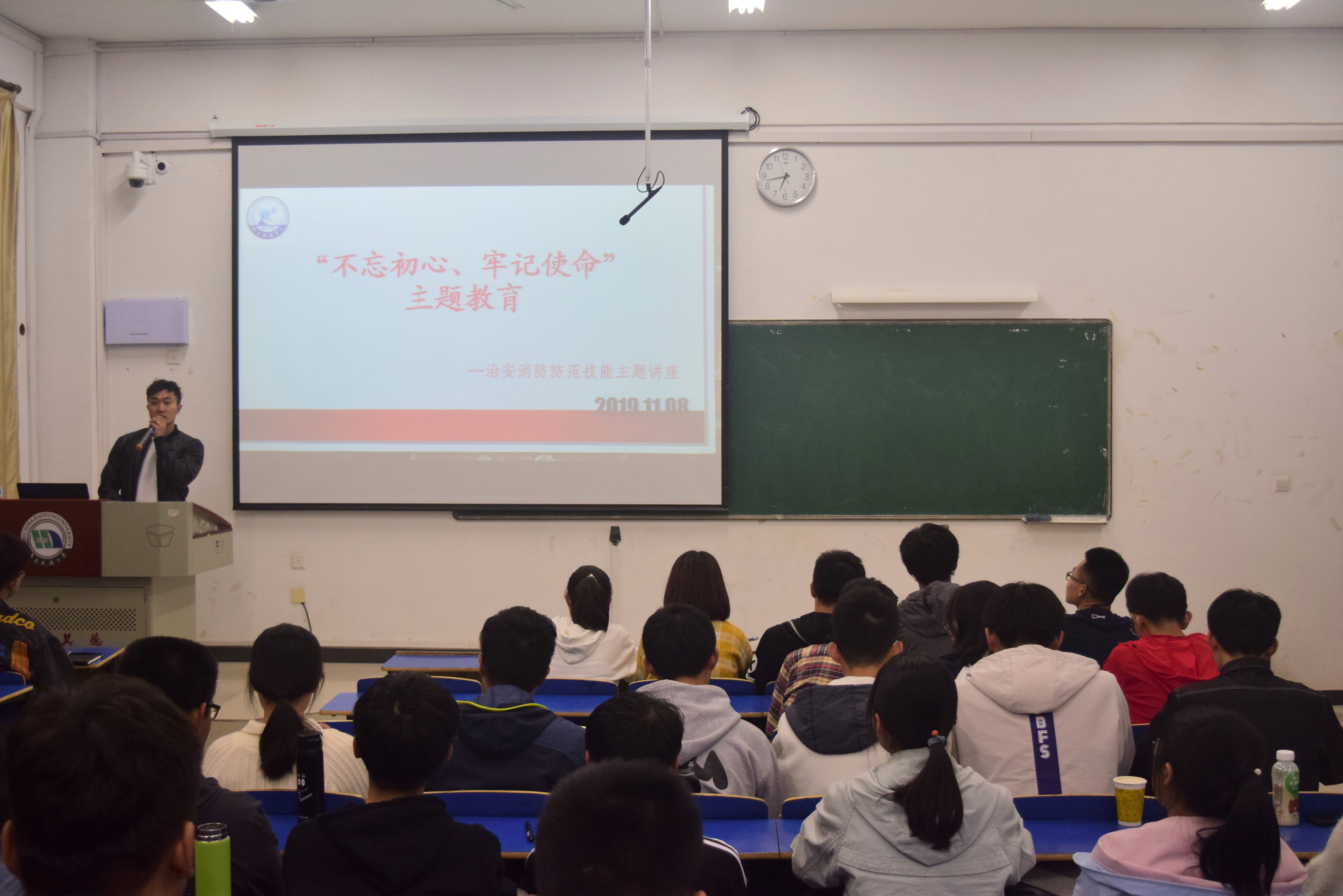 为扎实推进“不忘初心、牢记使命”主题教育,保障学生安全,11月8日,信息学院于逸夫楼111室举办治安消防防范技能主题讲座。讲座特邀校保卫处熊炜老师主讲。各班消防员、综治负责人、班长、团支书及安联组成员聆听讲座。