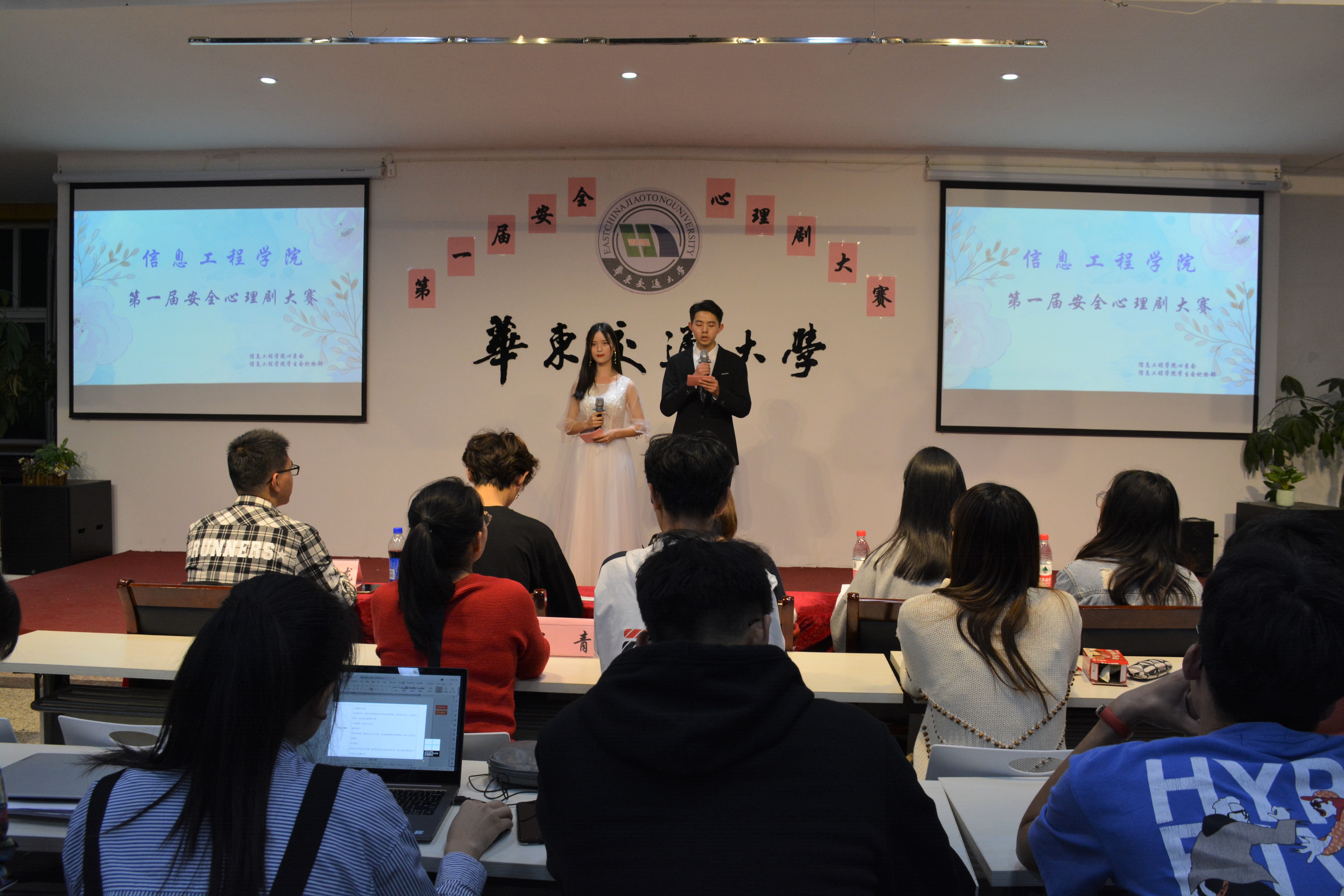 为加强学生心理健康教育的推广力度,营造和谐健康的校园氛围,11月5日,信息学院于大学生活动中心三楼天佑讲堂举办了第一届安全心理剧大赛。信息学院学工办副主任兼团委副书记杨青及19级计算机类辅导员胡林娜莅临比赛现场,观看表演。信息学院学生会第十九届主席团、19级带班党员及大一全体新生观看本次比赛。