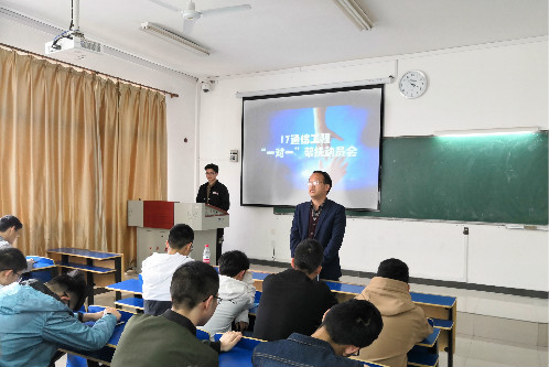 为体现同学间互助友爱的精神,帮助学习困难的同学全面提高学习成绩,营造良好的班风,4月11日,17通信一、二班齐聚于教14栋110室召开“一对一”帮扶动员大会,辅导员何仲坚出席会议,两班全体同学与会。