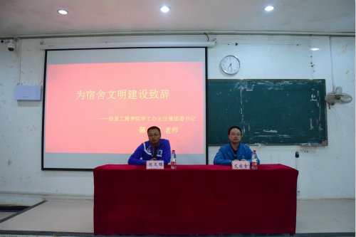 会议伊始,艾国金宣读《关于表彰2017-2018学年第二学期信息工程学院优秀寝室的决定》。曹宇博则对关于特色寝室的类别与评选标准进行讲解,特色寝室共有文体型、实践型、安全型、学习型、卫生型五种类别,学院会根据各个寝室的学习氛围、卫生安全、活动积极性等多个方面进行评选。