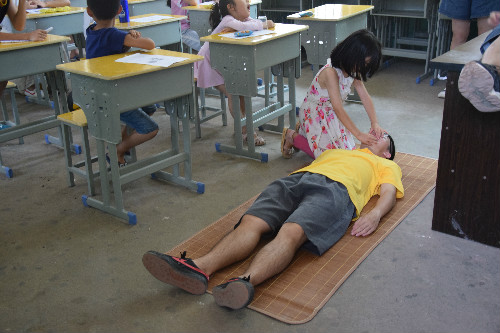 实践团了解到三都镇水系发达,溺水事件时有发生后,特准备了一场图文并茂的“泳安行动”理论知识宣讲,并用理论联系实际,为留守儿童做人工心肺复苏演示。活动结束后,实践团队的成员们向留守儿童们赠送了笔袋、笔记本等礼物。