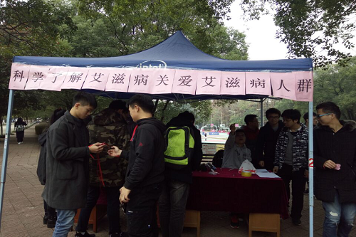12月1日,正值第30个国际艾滋病日,为了向全校同学科普艾滋病相关知识,信息学院15级物联网一班在南区一食堂门口组织了以“科学了解艾滋病,关爱艾滋病人群”为主题的班团活动。