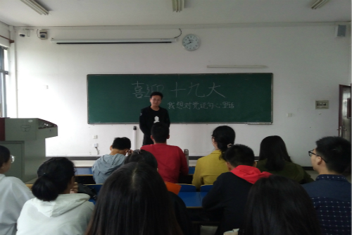 同学们就“跟党说句心里话”这个话题进行积极热烈的讨论。“我是一名预备党员,我深知我的责任和义务,在十九大召开之际,我希望可以用自己的力量继续践行‘两学一做’,中国共产党,是我永远的精神上的引领者。”该班肖佳豪说道。