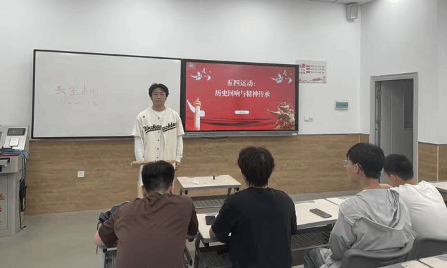 红色教育浸润心灵,激发奋进动力。各班通过组织观看《大决战》等红色影片,以辽沈战役等历史场景重现革命先辈的斗争智慧,让同学们深刻体会“量变到质变”的革命规律与集体主义精神;团支部带领同学们走进红色教育基地,面对陈列文物与珍贵史料,聆听五四先驱英勇事迹。2023级刘帅航感慨道:“革命先烈对共产主义的坚定信念,是我们直面困难的精神灯塔。”