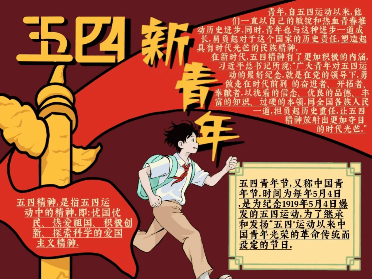 青年学子以创意为笔,在文化创作中勾勒五四精神的当代画像。主题手抄报创作活动中,同学们将创意与情感倾注于笔端。用绚丽的色彩与灵动的文字,勾勒出五四运动的历史画卷,展现五四精神的核心内涵;征文比赛围绕“五四精神与新时代青年使命”深入思辨,字里行间流淌着对家国责任的深刻理解。