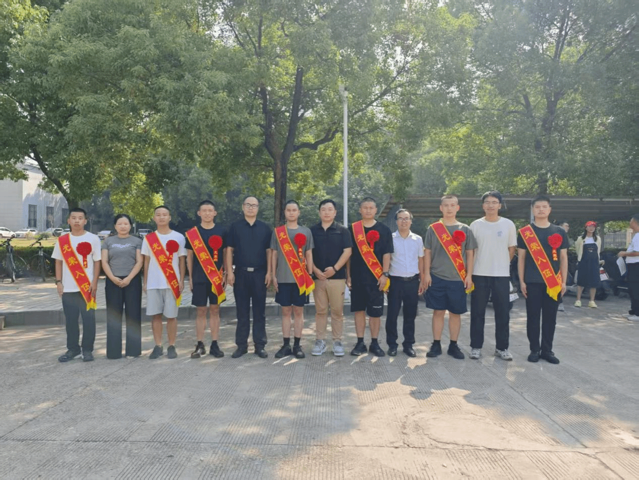 9月4日上午,ok138cn太阳集团在北区校门口举行2025年秋季应征入伍学生欢送仪式。院党委副书记冯荣刚、党委组织员王业贵、学工办副主任陈加丽、学工助理崔焱、团委副书记肖志鹏与即将奔赴军营的学子齐聚一堂,共同见证青年学子将青春理想融入国防事业的重要时刻。
